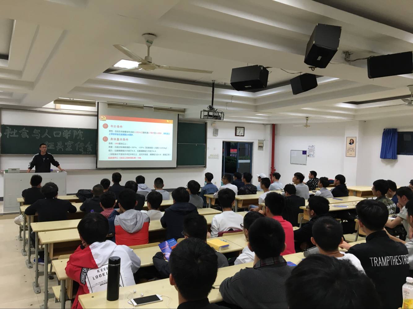 为积极响应党中央积极推进国防和军队现代化建设、提高兵员征集质量,加强大学生应征入伍政策的宣传教育力度,激发在校大学生参军热情,确保我校2018年度征兵工作顺利完成,3044am永利集团3044noc于2018年4月26日晚上6点30分在教三102教室举行大学生征兵宣传大会。3044am永利集团3044noc全体男生、学院辅导员老师参加了此次征兵动员大会。